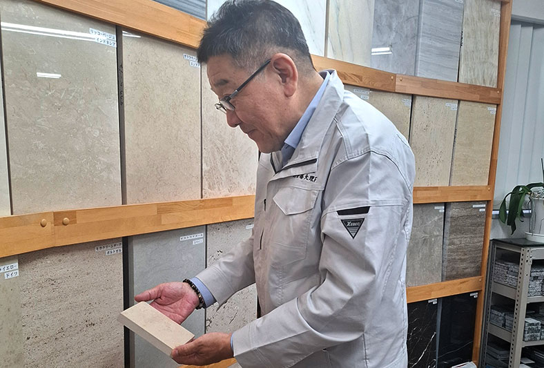 材料/製品販売部門:同業他社及びタイル建材店/工事店などに営業販売しています。